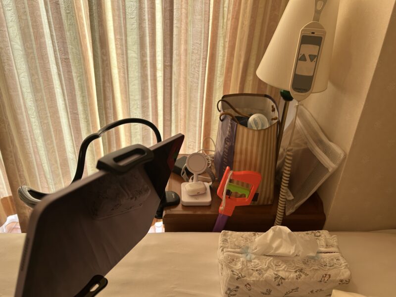 10:50〜 案内された部屋で、明日の昼まで術後のキツい時間を過ごすとのことだったので、部屋を快適にセッティングします。