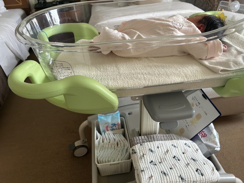 どちらの産後ケアホテルでも、コットの中身はベビールームでスタッフさんが補充してくれるので、持ってく必要は一切ありません。