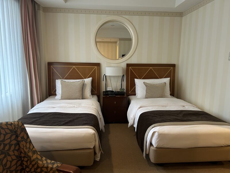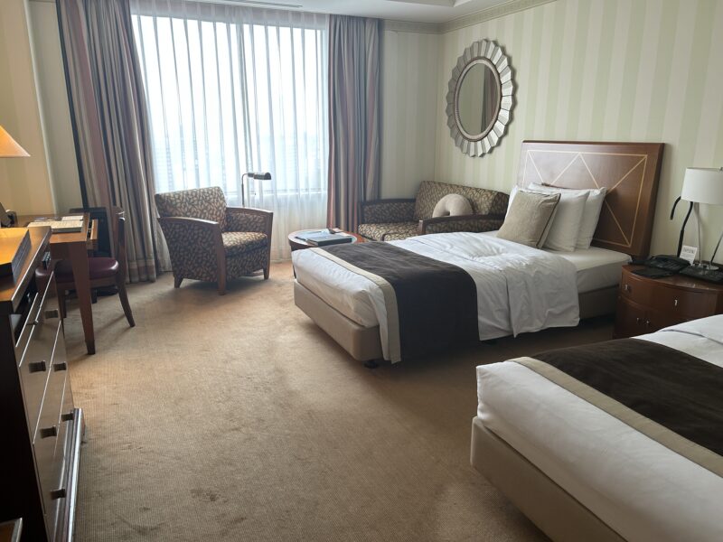 車で来る家族や友人を気軽に呼びやすく、部屋で過ごすもよし、帝国ホテルのレストランで一緒に食事するもよしでした。