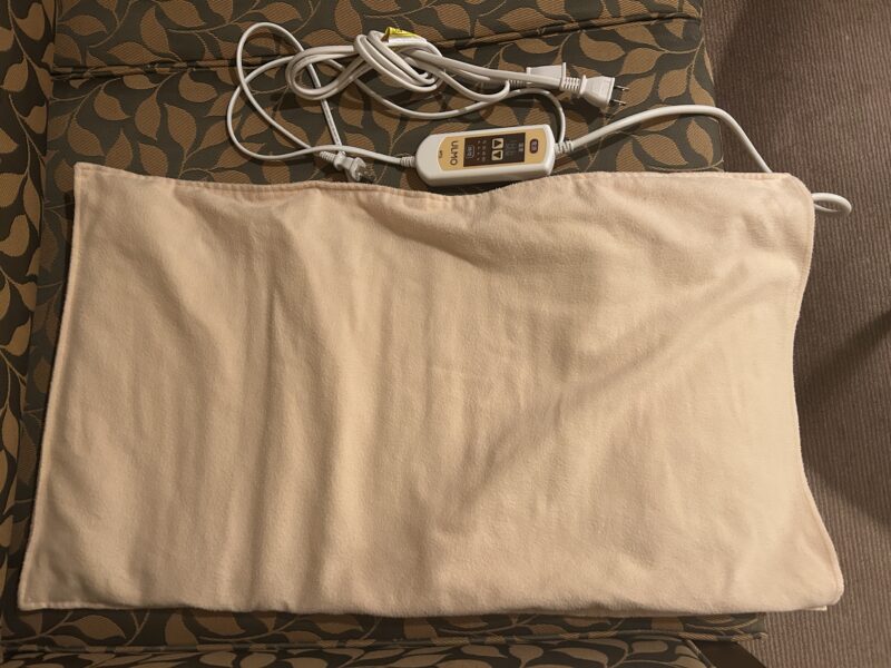 電気毛布みたいなやつで、貼るカイロほど熱々にならず、じんわり温めてくれます。