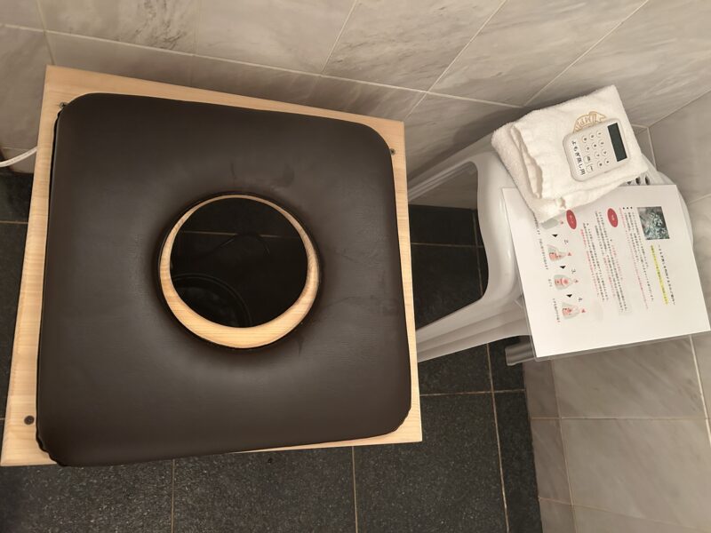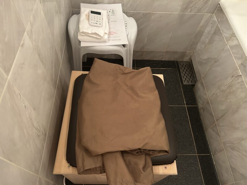 他の無料オプションは全て部屋での体験でしたが、よもぎ蒸しだけは浴室内でした。